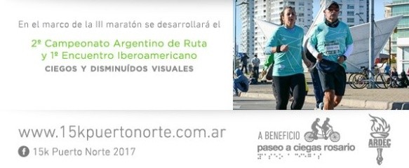 La 3ª Maratón 15K Puerto Norte Rosario se realizará el próximo domingo 23 de abril junto con el 2º Campeonato Argentino y 1º Encuentro Iberoamericano de Ciegos y Disminuidos Visuales.