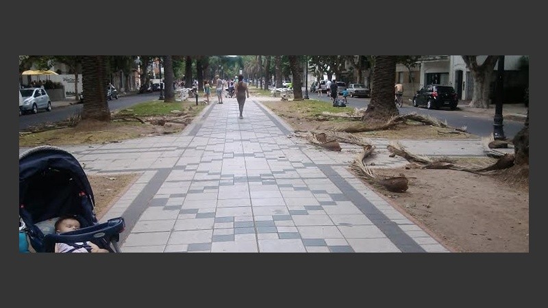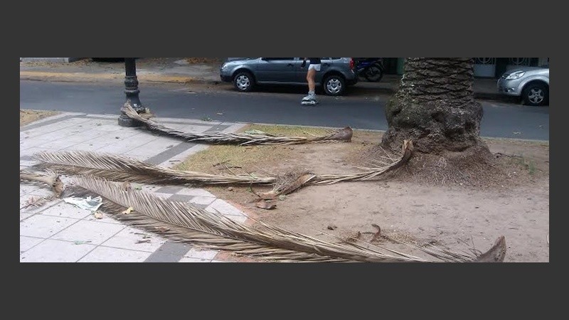 Una vecina de Pichincha envió a la sección Periodismo Ciudadano una serie de imágenes que muestran grandes hojas de palmeras y ramas sobre bulevar Oroño.