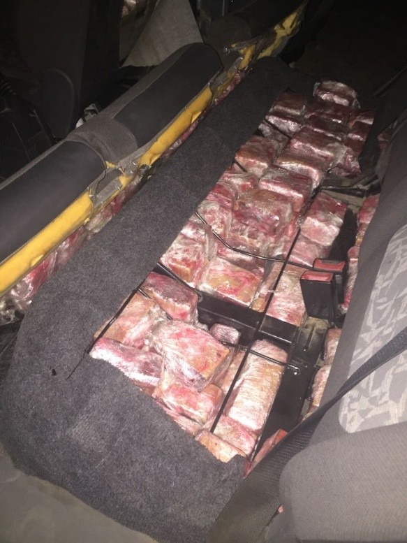 Al requisar el interior se encontraron con una gran cantidad de ladrillos de marihuana que estaban ocultos debajo del asiento trasero, por lo que se convocó a personal de narcocriminalidad de