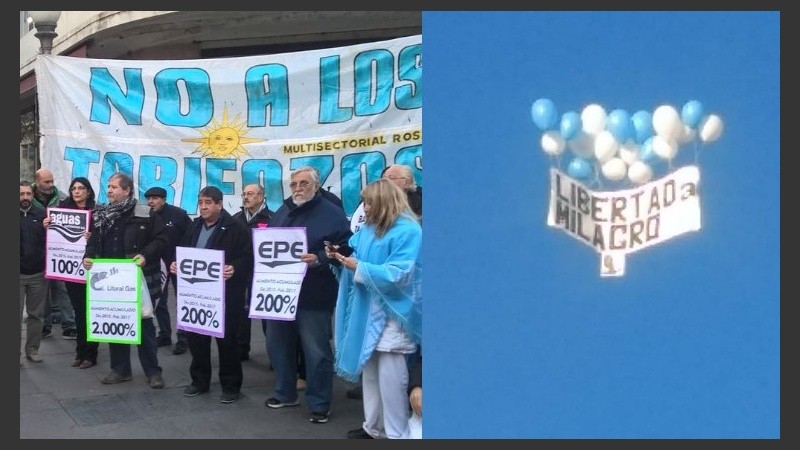 La Multisectorial contra los Tarifazos se concentró en la plaza 25 de Mayo con pancartas que exponían los aumentos en los servicios de luz, agua y gas. También contra las políticas del gobierno nacional.
