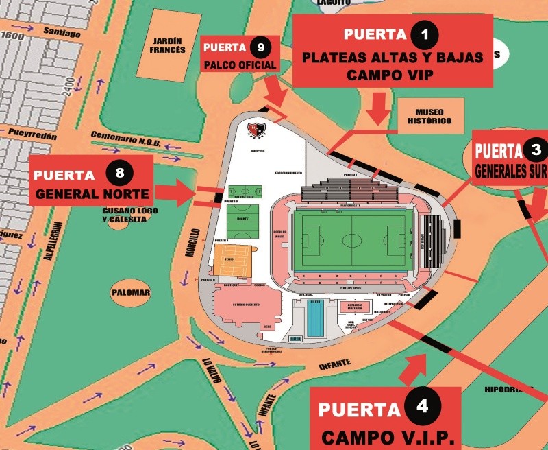 Las puertas del estadio abren a las 19. Abajo, el mapa de los accesos al predio.