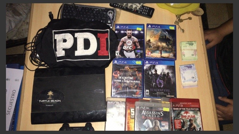 En un allanamiento hecho por la PDI en Sarmiento al 3200 se apresó al sospechoso y se secuestraron videojuegos, una Play Station 3 con joystick, un teclado inalámbrico y unos 37.600 pesos.