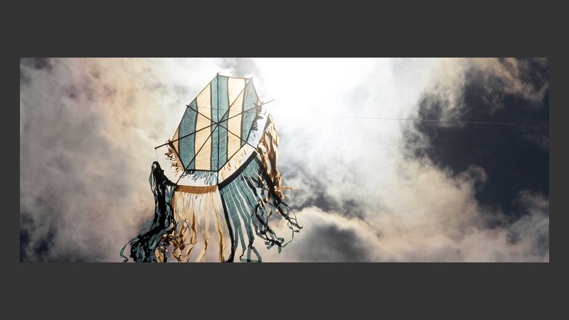 La colorida nave cerró el certamen internacional “Pintemos el Cielo de Rosario 2012”, que desde el viernes reunió a cientos de chicos y grandes que llegaron desde Mar del Plata, Formosa, Reconquista, Derqui y muchas otras localidades, como cada año.