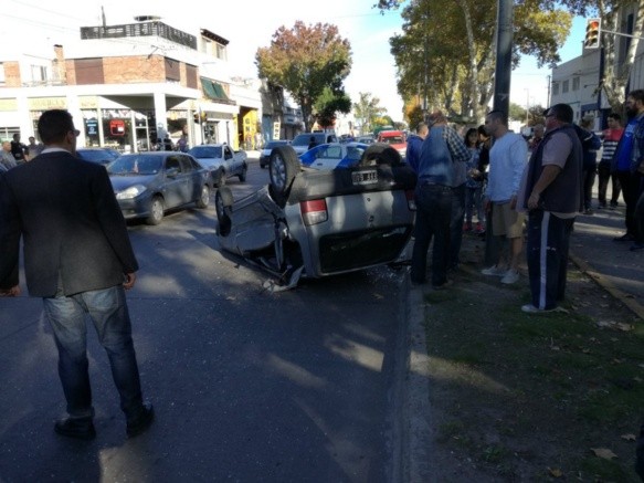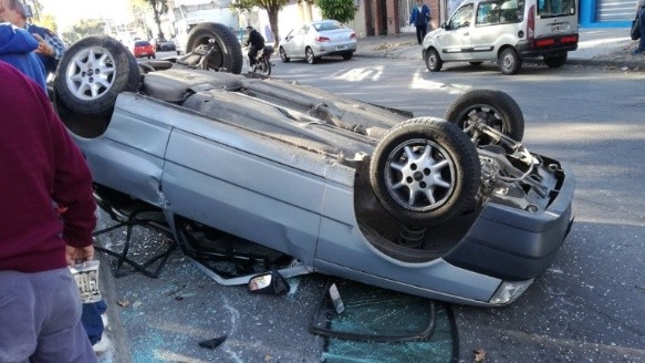 Un violento choque entre dos vehículos se produjo este martes por la mañana en la zona sur de Rosario. Por el fuerte impacto, uno de los autos volcó y quedó sobre la calzada con las ruedas hacia arriba. Uno de los conductores sufrió heridas y feu trasladado a un centro de la salud.