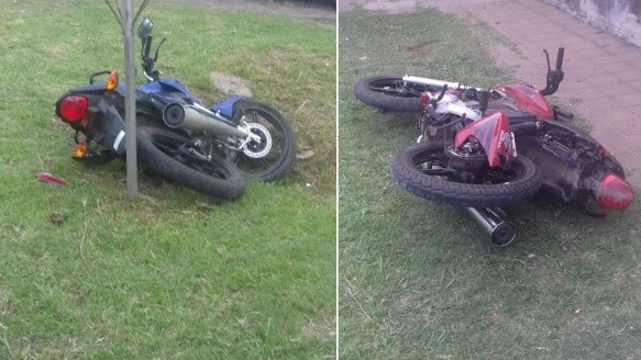 Los rodados cilindrada 125 -uno azul y otro rojo- colisionaron por motivos que no estaban claros y quedaron tendidos sobre la vereda en la zona oeste de la ciudad.