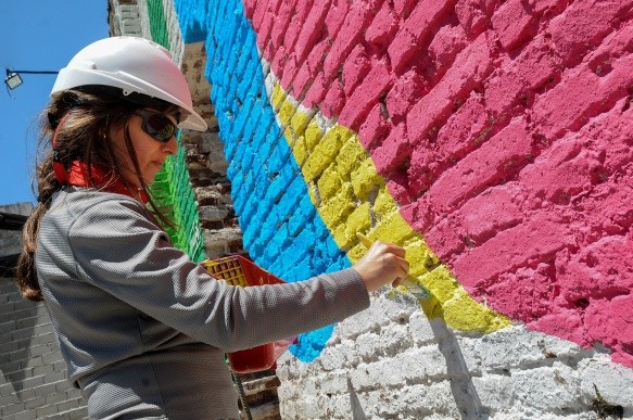 A través de una inédita propuesta, Obring y Rosental, empresas que llevan adelante el mega emprendimiento inmobiliario, abrieron una convocatoria a artistas locales para plasmar sus creaciones en un mural de 286 m2 ubicado frente al gran cerco abierto perimetral, tras el que las obras avanzan a paso firme.