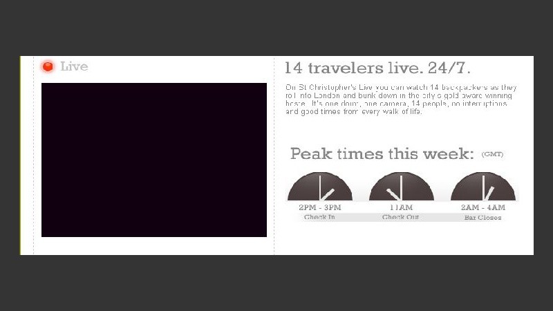 El Mundo, quien quiera puede seguir en vivo las 24 horas sin interrupción por la Internet los acontecimientos en la habitación para 14 personas, donde, según datos del albergue, duermen siempre por lo menos 10 personas, y observar, por ejemplo, a jóvenes turistas borrachos en sus intentos de subirse a las camas altas. Para ello uno tiene que registrarse, gratuitamente, en la página de Internet