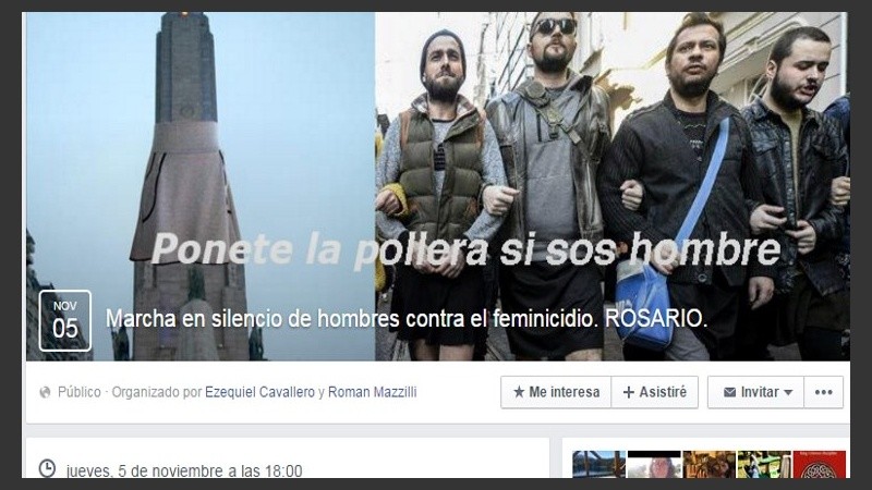 A través de Facebook, los “hombres con pollera” explican los alcances de la movida. “Hombres que nos ponemos en el lugar de la mujer. Hombres que decimos que hoy "somos todos mujeres" y que estamos en riesgo. Hombres que nos enorgullecemos de las mujeres y tomamos una de sus prendas como símbolo”, se presentan.