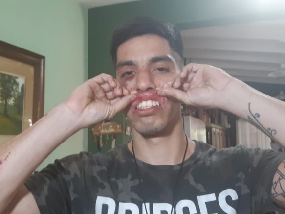 “Lo que me decía es que era un oficial de Gendarmería y que me reducía por un robo”, siguió el joven mientras mostraba las heridas en su rostro, boca y piernas.