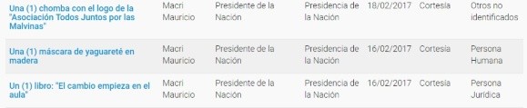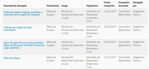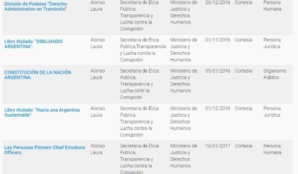 La lista completa de obsequios y viajes recibidos por funcionarios públicos se puede leer haciendo click aquí.