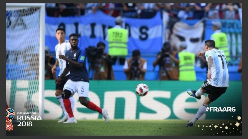 #SomosArgentina | 40' PT | #FRA 1 - 1 #ARG | ¡GOL DE ARGENTINA! Bombazo de Ángel Di María para igualar el partido. El Fideo recibió fuera del área, la acomodó para su pierna hábil y sacó un remate perfecto que se clavó lejos del arquero francés. pic.twitter.com/icJIsrciVI