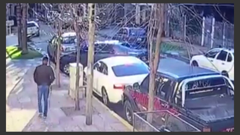En el video puede verse un BMW blanco que intenta estacionar, cuando un auto se le cruza por delante. En ese momento, dos hombres se acercan por las puertas del conductor y del acompañante, se introducen en el interior del vehículo y huyen con la víctima.