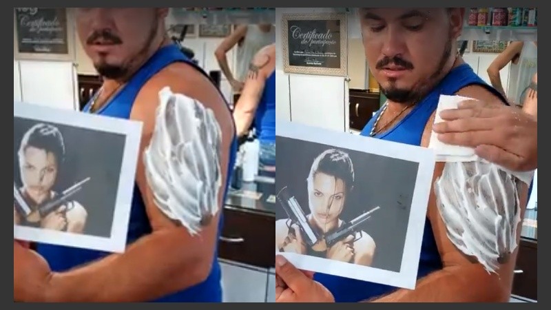 Un joven brasileño, fanático de Angelina Jolie, quiso tatuarse el rostro de la actriz en uno de sus brazos, pero el resultado fue pésimo. La reacción del hombre quedó filmada y se volvió viral a través de las redes sociales.