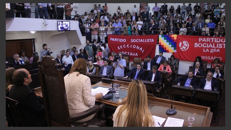 Fein saludó la presencia de los ex intendentes Miguel Lifschitz (quien este viernes asumirá como gobernador) y Hermes Binner y a las nuevas autoridades del Concejo, y celebró “los 32 años de democracia en este país”.