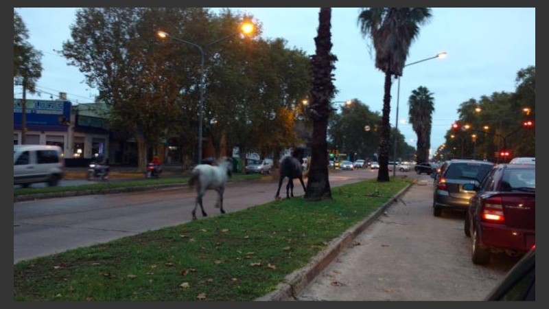 Caballos salvajes agitaron el amanecer de este lunes. Los animales irrumpieron en medio de bulevar Rondeau, en la zona norte, conmocionando a conductores y transeúntes. Finalmente, fueron reducidos y enlazados por personal municipal y policial.