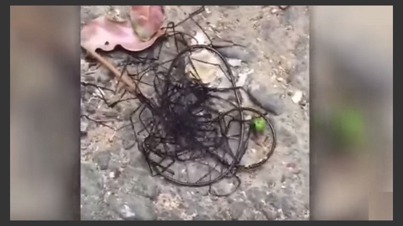 En el video se puede ver a una especie de insecto parecido a un ovillo de hilos negros moviéndose por el suelo.