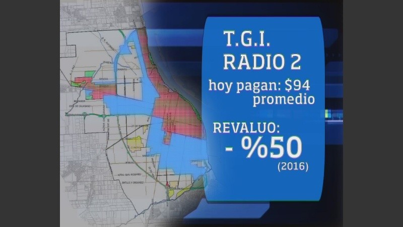 -Radio 2 (buena parte de la zona sur, parte del oeste, y de avenida Alberdi/Rondeau hacia el oeste), que hoy paga unos 95 pesos y sufriría un revalúo inferior al 50 por ciento.