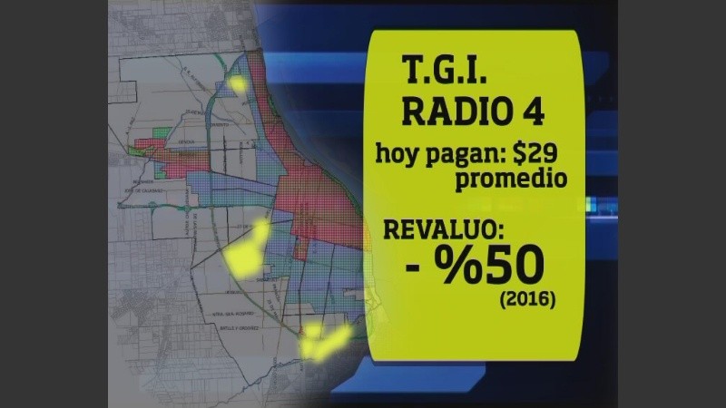 -Radio 4 (puntos en extremos del mapa rosarino, los más emprobrecidos), que también tendrían una suba menor al 50 por ciento; hoy reciben la boleta de la TGI en el orden de los 29 pesos.