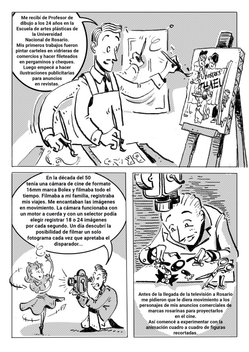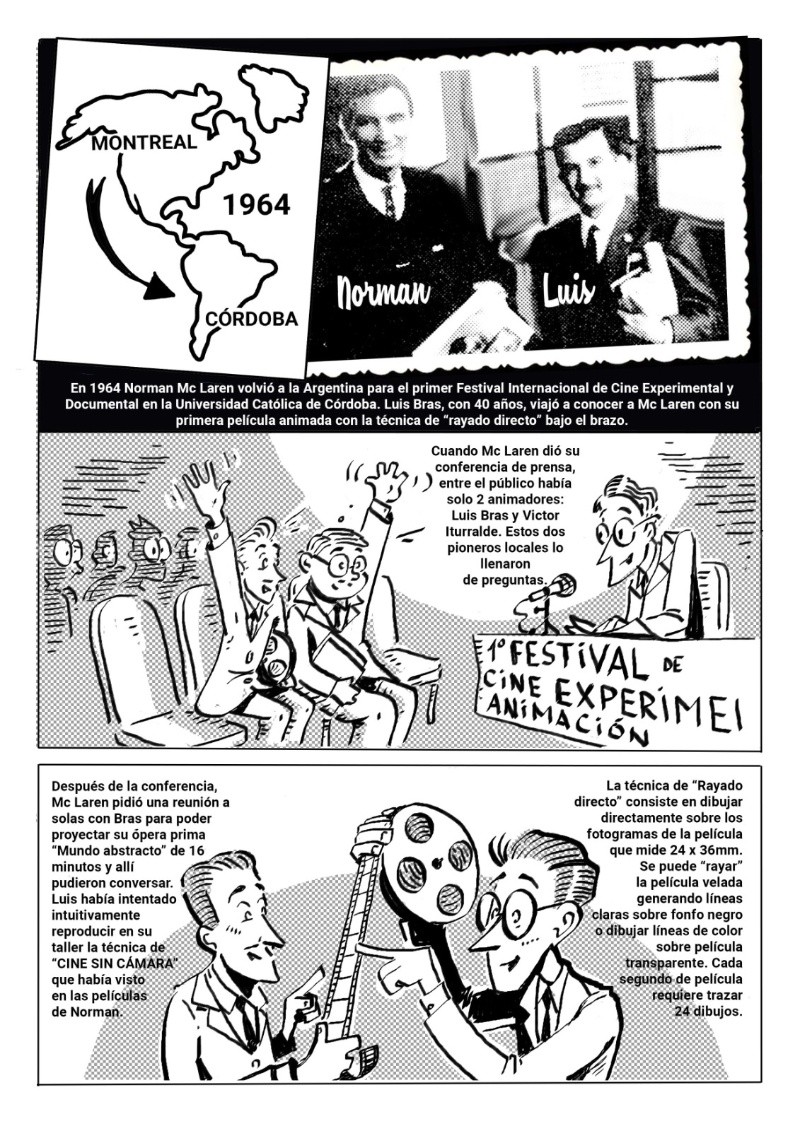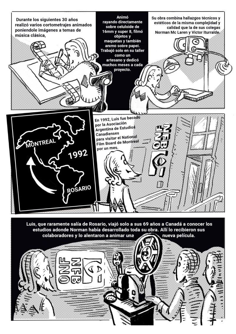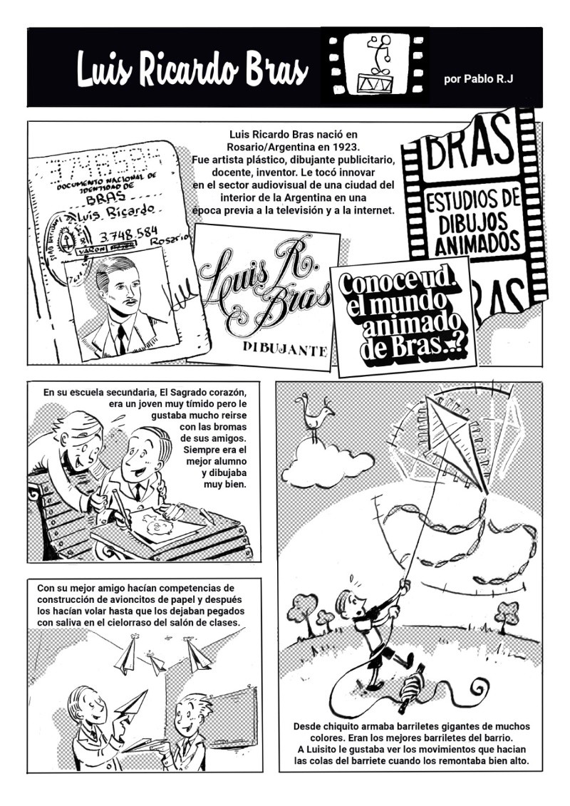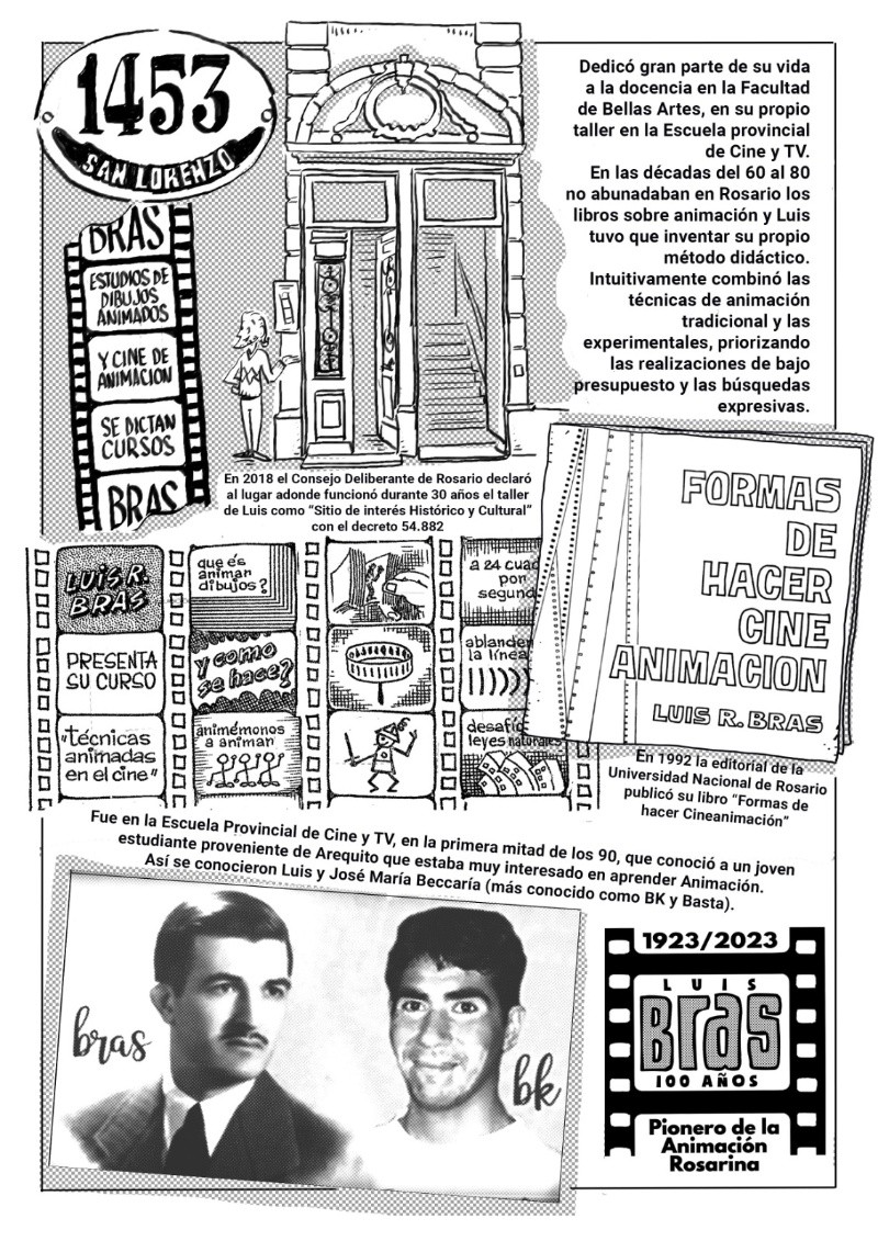 Esta función homenaje reúne fragmentos de las obras de Luis Bras, Víctor Iturralde, José María Beccaría y Norman Mc Laren y serán presentadas por Fernando Martín Peña, docente, investigador y coleccionista de cine, discípulo de Iturralde y custodio de los originales de sus obras en la Filmoteca Buenos Aires. Se proyectarán cortometrajes animados de estos cuatro artistas que incursionaron (por decisiones artísticas y económicas) en la técnica artesanal del “rayado directo sobre película” o “cine sin cámara”, se trata de la versión más extrema y primitiva de la animación que consiste en dibujar directamente sobre los fotogramas sin participación de la tecnología. Pablo Rodríguez Jáuregui, Coordinador de la Escuela Para Animadores, dio detalles a Rosario3 de este reconocimiento. -¿Quién fue Luis Bras? -Luis Ricardo Bras fue un animador autodidacta que trabajó acá en Rosario, nació en el año 1923, estudio Bellas Artes y se interesó en la animación a fines de la década del 50 en el Cine Club Rosario cuando vio las animaciones de un animador canadiense Norman McLaren. Acá en Rosario no había con quien estudiar animación así que se puso a investigar y se enseñó solo digamos, se entrenó solo. Hizo una serie de películas de animación muy valiosas, y creó el primer curso de dibujos animados de acá de la ciudad. Fue el primero en el mundo de la animación en Rosario y aparte fue el primero que sistematizo una forma de enseñar la animación. Fue profesor en la Facultad de Bellas Artes (UNR) y en la Escuela Provincial de Cine. -¿Cuál fue el legado que dejó Bras a las futuras generaciones de animadores? -Brass, aparte de su producción como autor, como animador artesanal, a partir del año 62 con el nacimiento de la televisión rosarina creo los personajes y animó más de trescientas publicidades para marcas rosarinas. Muchas marcas que nosotros conocemos todavía conservan los personajes al lado del logos, los logos fueron creados por Bras también. Entonces está metido dentro de la cultura local desde varios lugares, fue animador publicitario, animador artesanal y docente. Yo lo conocí a mediados de los años 80, yo me vine de Santa Fe capital a acá a estudiar cine, y cuando abrió la Escuela de Cine en el 84, cuando yo expresé que mi interés era hacer animación Mario Piazza, que era docente de ahí de la Escuela, me llevó al sótano de Luis Bras que estaba en San Lorenzo 1453. Hay una placa ahí que recuerda que ahí en ese sótano funcionó el taller de Bras, y este declarado sitio de interés histórico y cultural por el Concejo Deliberante. -¿De qué manera se realizará este homenaje? El domingo 29 de octubre se van a cumplir cien años del nacimiento de Luis Bras, el falleció en el año 95, y desde el 95 los animadores que estudiamos con él y todas las generaciones que vinieron después lo venimos recordando de distintas maneras. Acá hay una escuela para animadores que funciona hace 18 años y hay como un museo que tiene parte de sus cosas en exhibición. En el año 2000 con Fernando Martín Peña, que es coleccionista, historiador, es uno de los que se ha dedicado a escribir la historia de la animación en la argentina, lo puso a Bras en la línea de tiempo de la historia de la animación argentina. Hicimos un documental en el año 2000 también que está en YouTube, se llama “El mundo animado de Brass”, así que para los cien años de Bras tuvimos que generar un material inédito que mostrara una faceta que antes no hubiéramos abordado, que era aparte de la historia de Brass que ya escribimos buscar cómo se relacionaba Luis Brass con su referente que era Norman McLaren, que era posiblemente el animador más importante de la historia de la animación mundial. Un animador escoces que se radicó en Canadá y que tiene realmente una obra que es importantísima en la historia de la animación mundial y que interactuó con Bras acá en el año 64 en un Festival de Villa Carlos Paz. Entonces, con Diego Rolle y Esteban Tolj dibujamos una historieta que se llama “4 Héroes de la Revolución de los dibujitos”, que enlaza la historia de Luis Bras con Norman McLaren y con la de otros dos animadores que trabajaron en una técnica muy especial que es la animación sin cámaras. Es una técnica extrema que trabaja directamente dibujando a mano sobre la película cinematográfica, unos fotogramas muy chiquitos intervenidos a mano con plumín, marcadores y demás. Entonces los otros dos animadores en juego se llamaban Víctor Iturralde Rúa que era de Buenos Aires y que también interactuó con Norman McLaren tanto acá en Argentina como en Canadá, y el otro es un crédito local, amigo nuestro José María Beccaría de Arequito, uno de los fundadores de la escuela para animadores, que trabajo también esa técnica en la década del 90. La Historieta está editada en un soporte papel La revista está editada ya hace dos meses, es una edición de la Secretaria de Cultura de la Municipalidad de Rosario, está a disposición del público en la Librería Municipal, en la Biblioteca Argentina en el local de Pte. Roca al 700, y se puede descargar en PDF desde la página de la Escuela para animadores en la sección Biblioteca están las tres publicaciones que lleva hecha la escuela para animadores.