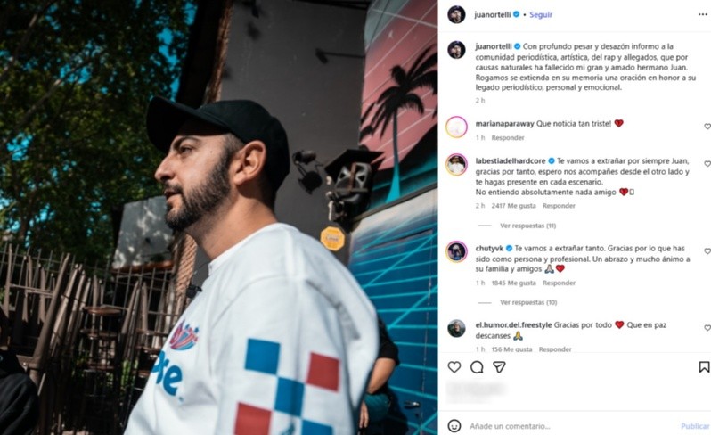 La noticia del fallecmiento fue confirmada por su familia a través de la propia cuenta de Istagram del periodista: “Con profundo pesar y desazón informo a la comunidad periodística, artística, del rap y allegados, que por causas naturales ha fallecido mi gran y amado hermano Juan. Rogamos se extienda en su memoria una oración en honor a su legado periodístico, personal y emocional”.
