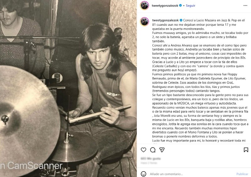 El último domingo por la tarde, a partir de una publicación de la percusionista Andrea Álvarez, trascendió la muerte del baterista Lucio Mazaira, a los 63 años.