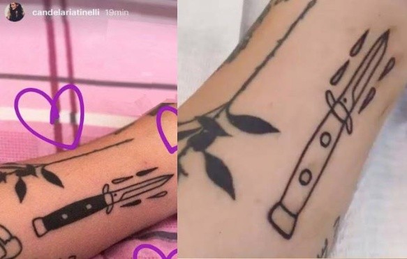 Candelaria Tinelli posteó una nueva captura de uno de sus tatuajes en Instagram Stories. El dato esta vez es que se trata de un punzante diseño: un cuchillo.