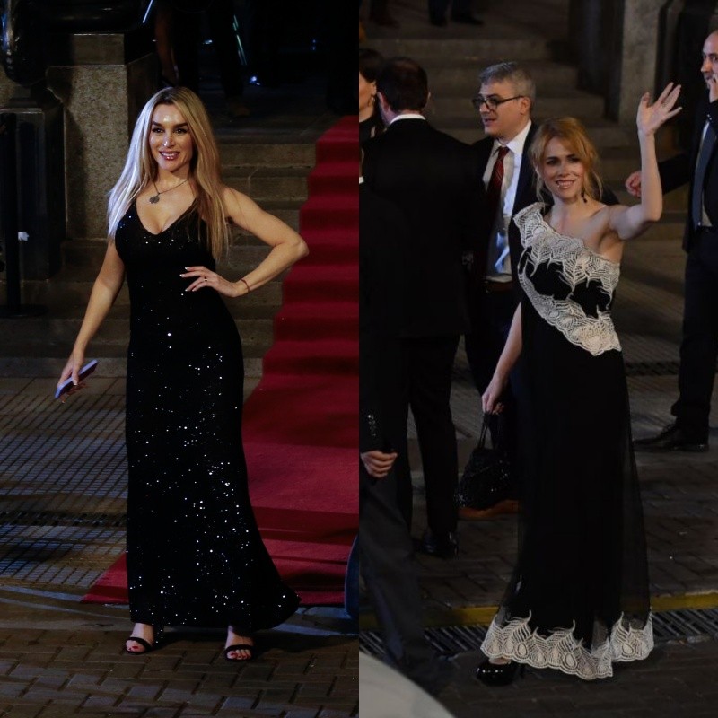 La etiqueta para la velada, requería de un cambio de atuendo no sólo para Milei que desde temprano tuvo que cumplir con los distintos momentos protocolares de la asunción, sino para sus más cercanos, como la primera dama, Fátima Florez y su hermana y flamante secretaria general de la Nación, Karina Milei.