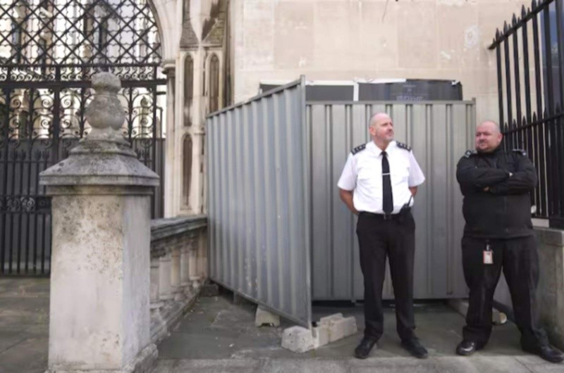 A primeras horas de la mañana, la vereda fue vallada por personal de seguridad y acto seguido, procedieron a cubrir la pintura para que no se pueda ver. Según consignó el diario británico The Guardian, desde los Reales Tribunales de Justicia señalaron que esta acción respondía a que el edificio está catalogado como patrimonial, lo que impone la obligación de conservar su fachada original.