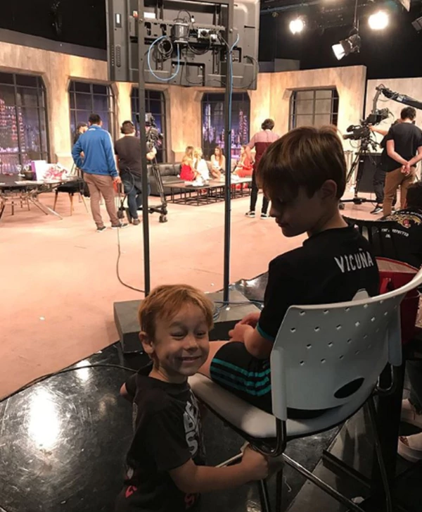 La modelo compartió en su cuenta de Instagram algunas fotos de la visita que recibió pero “editó” la escena. ¿Cómo? Borró el apellido de la camisa de Bautista, que llevaba escrito Vicuña en su espalda, aprovechando el fondo negro de la prenda. "Gracias a mis amores por venir a sorprenderme en los 100 programas de Pampita Online. @picomonaco. #BautiBomba #BeltranRubio #BeniGorditoRico", escribió junto a las fotos de sus tres hijos y el ex tenista delante y detrás de cámara.