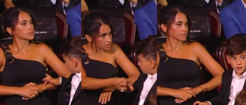 La ceremonia tuvo momentos emotivos y otros más tensos, como, por ejemplo, el reto de Antonela Roccuzzo a Ciro Messi. Pasa que el pequeño “estaba en otro mundo” cuando su papá comenzaba el discurso de agradecimiento por el Balón de Oro recibido.