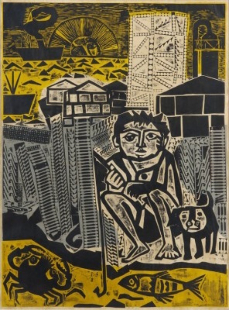 Juanito pescando, 1962, xilografía, 194 x 145 cm. Col. Museo Castagnino, Rosario