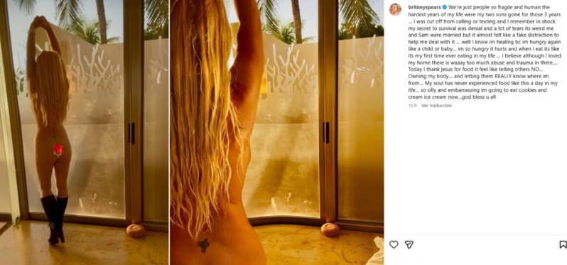 La cantante y actriz Britney Spears compartió en redes sociales una imagen completamente desnuda. El posteo está acompañado de un texto en el que detalla los difíciles momentos que atravesó y cómo es su presente en recuperacón.