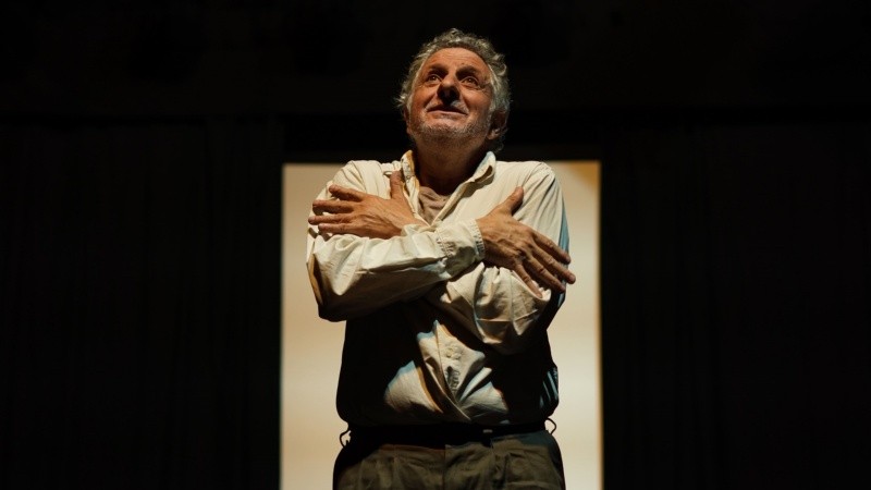 -Eso fue tremendo, porque el texto cuando lo termino de escribir, en noviembre del 2022, tenía 160 páginas, era un testamento, era imposible, entonces me empiezo a reunir con amigos, unos me dicen que estoy totalmente loco pero que siga, otros me dicen que va a ser imposible de digerir. A partir de enero del 2023, o sea hace más de un año, empiezo a ensayar, y empiezo a ensayar invitando gente a ver qué pasaba. Y el teatro solo me fue llevando, es decir la necesidad del actor puesto en escena vibrando, sintiendo, encontrando, hizo que la obra sola se fuera armando, se fuese haciendo una segunda escritura entre el actor y luego aparece el director. En marzo, aparece un director de actor, que es Alejandro Casavalle, pero hay diez grandes que participan en la obra directamente, entre ellos Néstor Zapata por ejemplo, que prácticamente puntúa, subraya, lo que vale escénicamente, porque una cosa es discurso literario y otra el discurso escénico. Entonces el discurso escénico se preparó intensamente entre enero y mayo y a fin de mayo la estrené en el Arteón el año pasado, y desde ahí no pare más. Es más, el primer fin de semana que voy a tener descanso es este, que por Pascuas no hacemos función. En casi un año no paré.