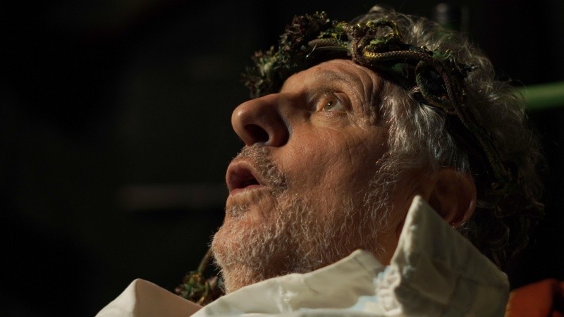 -Tampoco lo sabía, a medida que va avanzando la obra aparece el mito que transita toda la obra que es un actor que se queda sin sala, un viejo actor que quiere seguir haciendo su obra y un técnico, un soñador, alguien joven, que lo acompaña. No sabía quién lo iba a hacer, estaba probando, buscando, y de golpe me di cuenta que necesitaba alguien que pudiera manejar la consola del sonido y de luces, proyectar, y que se anime a improvisar, a entrar y salir en escena, desarmándola y a dialogar con el actor y a dialogar con la actualidad, y traer el futbol, y traer lo que pasa hoy. Lautaro tenia meses y me acompañaba en las giras y en los ensayos, tiene 25 años ahora, pero hace desde los 14 que hace teatro sin parar. Es profesor de teatro, vive de eso, y le digo “bueno si te animas hacemos la prueba”, nunca habíamos trabajado juntos, y no sé si lo vamos a volver a hacer, pero esto funciona, funciona en la transmisión, funciona porque entonces logra ser el puente en 40 años. Yo le llevo 41 años a Lautaro y ese puente se transmite en la obra, incluso te digo, fue lo que más conmovió al público español, venimos de allá. La ceremonia que se va armando con Lautaro, que a medida que lo invito empieza a ensayar y empieza a robar espacios, a ganar espacio en la obra, de hecho, el final de la obra lo hace él, el actor ya se va vencido de alguna manera y él retoma la antorcha y lanza al futuro. Eso es lo que conmueve tanto de la obra.