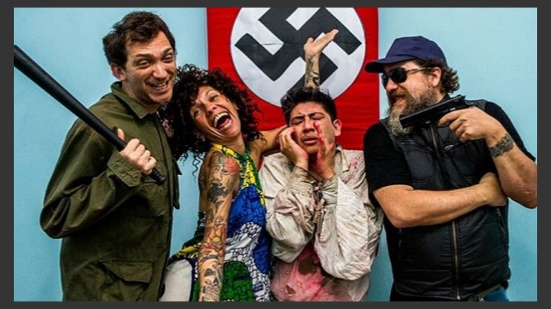 Los actores Mumo Oviedo, Martín Mazzucchelli y la actriz Lala Brillos levantaron el guante de las frases del frontman de La Beriso y con humor armaron El rock de Los Fachos.