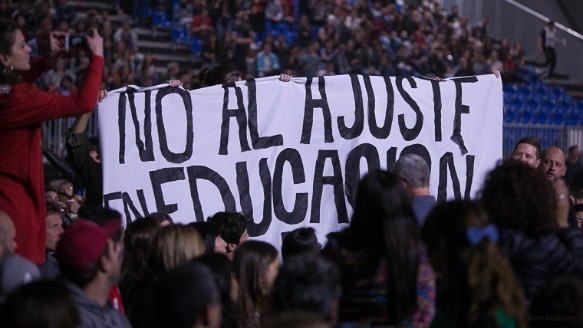 “No tenemos cortinero, no tenemos dólares, no tenemos nada”, lanzó García desde el escenario, en una noche en la que en el techo semicircular del predio rebotaron los insultos (cantados) a Mauricio Macri y fue abrazada en aplausos la bandera en rechazo a los ajustes a la educación pública.