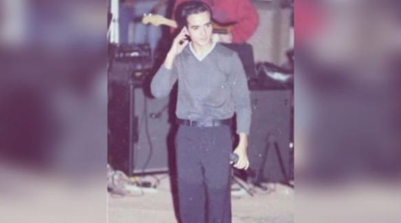 En la captura, el compositor puertorriqueño aparece más delgado con lentes y una larga cabellera; un look muy distinto al actual.