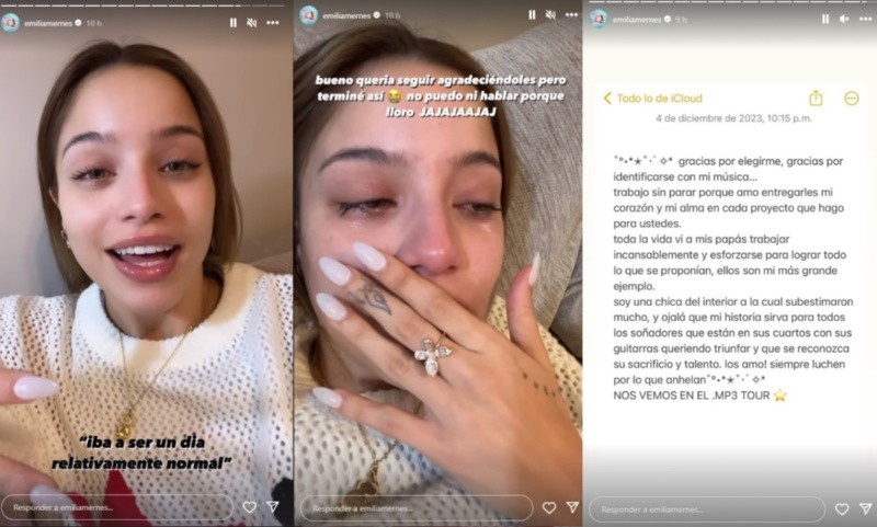 Minutos después, en la siguiente historia, ya en llanto, Emilia siguió: “Bueno, quería seguir agradeciéndoles, pero terminé así, no puedo ni hablar porque lloro jajajaj. Estoy ahogada”.