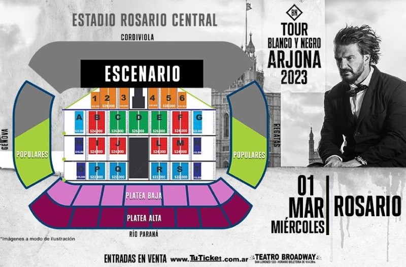 El último viernes comenzó la preventa de entradas para el recital que Ricardo Arjona dará el miércoles 1º de marzo de 2023 en el estadio de Rosario Central en el marco de la gira internacional Blanco y Negro.
