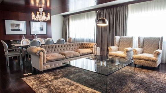 La suite está dotada de un triple ingreso. Además, el espacio cuenta con una decoración que incluye obras de arte de reconocidos artistas plásticos, velas y candelabros.