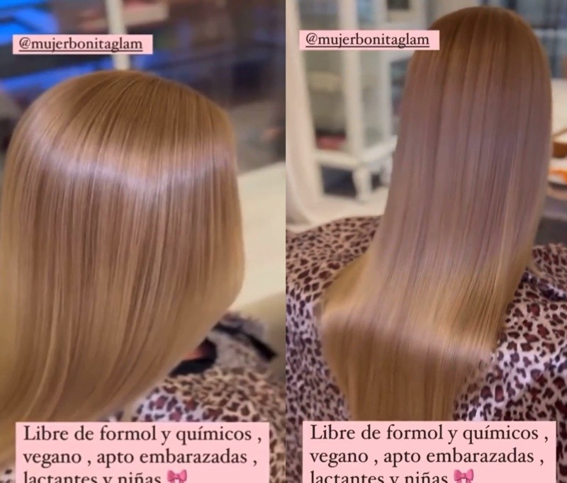 El tratamiento, según contó Nicole en sus historias de Instagram, no tiene formol ni químicos y es “vegano, apto para embarazadas, lactantes y niñas”.