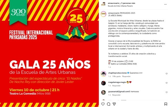 Este año, la Escuela Municipal de Artes Urbanas (Emau), celebra también su cuarto de siglo con actividades que fueron “desde las plazas hasta el Galpón 15 en la Franja del Río”, se lee en su Instagram.