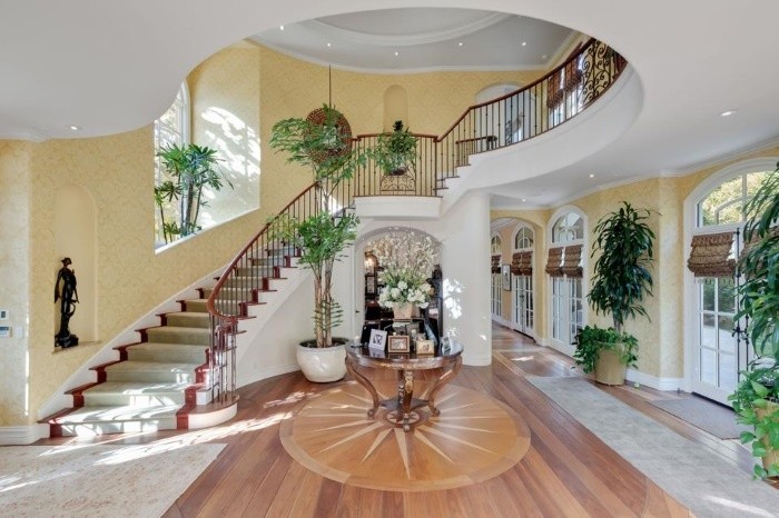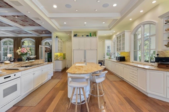 El interior es bellísimo, ya que cuenta con una gran decoración que da cuenta del impecable gusto de Simmons, que se luce gracias a la excelente iluminación. Un espacio familiar con chimenea y techos meticulosos se encuentra junto a una gran cocina con isla y un comedor formal con candelabros.