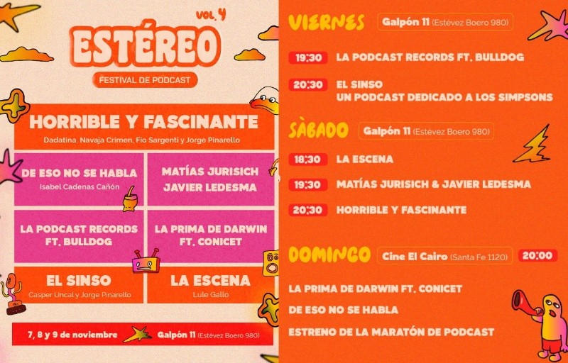 Este viernes, sábado y domingo en el Galpón 11 (Estévez Boero 980) y el cine El Cairo (Santa Fe 1120) se desarrollará la cuarta edición de Estéreo, festival de podcast.