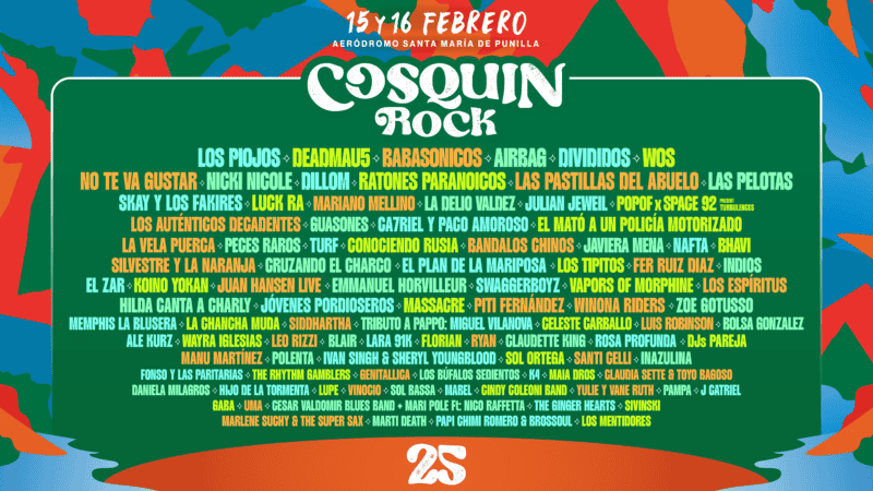 Cosquín Rock anunció este lunes la grilla para la edición 2025, que constará de dos fechas en febrero y se realizará en su tradicional escenario del Valle de Punilla, Córdoba. Estarán presentes una gran cantidad de artistas, con el anuncio especial de Los Piojos.
