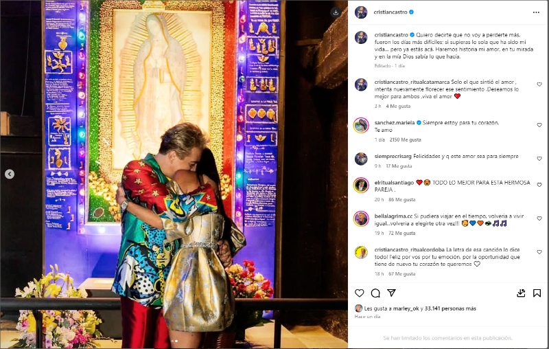 Cristian Castro y su novia Mariela Sánchez se mostraron reconciliados a través de las redes sociales. Hace apenas tres semanas, el cantante mexicano confirmó que se había separado de su nueva novia, la tucumana Ingrid Wagner, con quien estuvo en pareja solo 20 días.