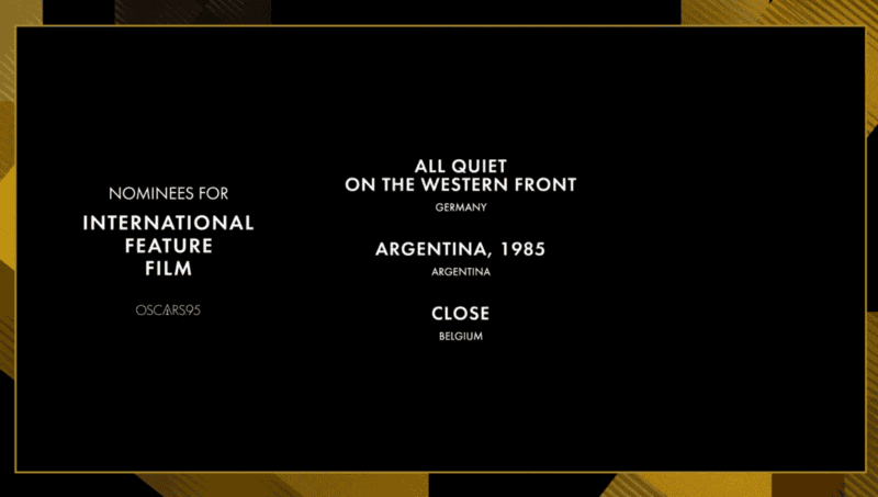 Fuera de la lista de nominados quedó RRR, la película india que le ganó a la película protagonizada por Ricardo Darín y Peter Lanzani en los Critics Choice, dado que su país de origen decidió presentar otro film entre las precandidatas de esta categoría.