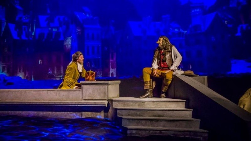 —Tranquilamente. Bueno, es su ídolo. Cyrano habla del Quijote. Y es un tipo que está totalmente enamorado de Roxane, pero él se considera feo porque tiene una gran nariz. Entonces cree que no puede enamorarla. Él ayuda a un soldado que quiere a Roxane a enamorarla, pero a partir de lo que él dice, a partir de cartas que escribe Cyrano, pero firma el otro. La obra se presenta tal cual como se hace en el teatro San Martín de Buenos Aires. Venimos con todos los titulares y con la escenografía, como corresponde.