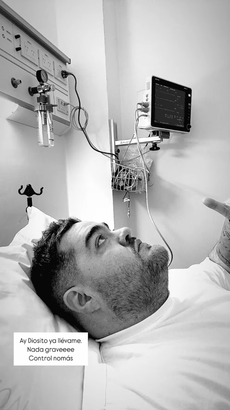 A través de su cuenta de Instagram, el propio Barassi compartió una foto desde la cama del hospital. "Ay, Diosito. Ya llévame. Control nomás", escribió.