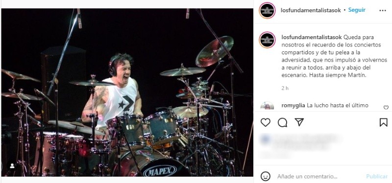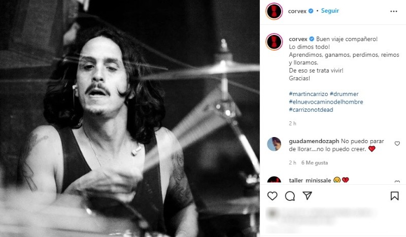 Más allá de los grupos que integró y los artistas que acompañó, la muerte de Carrizo generó un pesar que replicó en redes sociales.